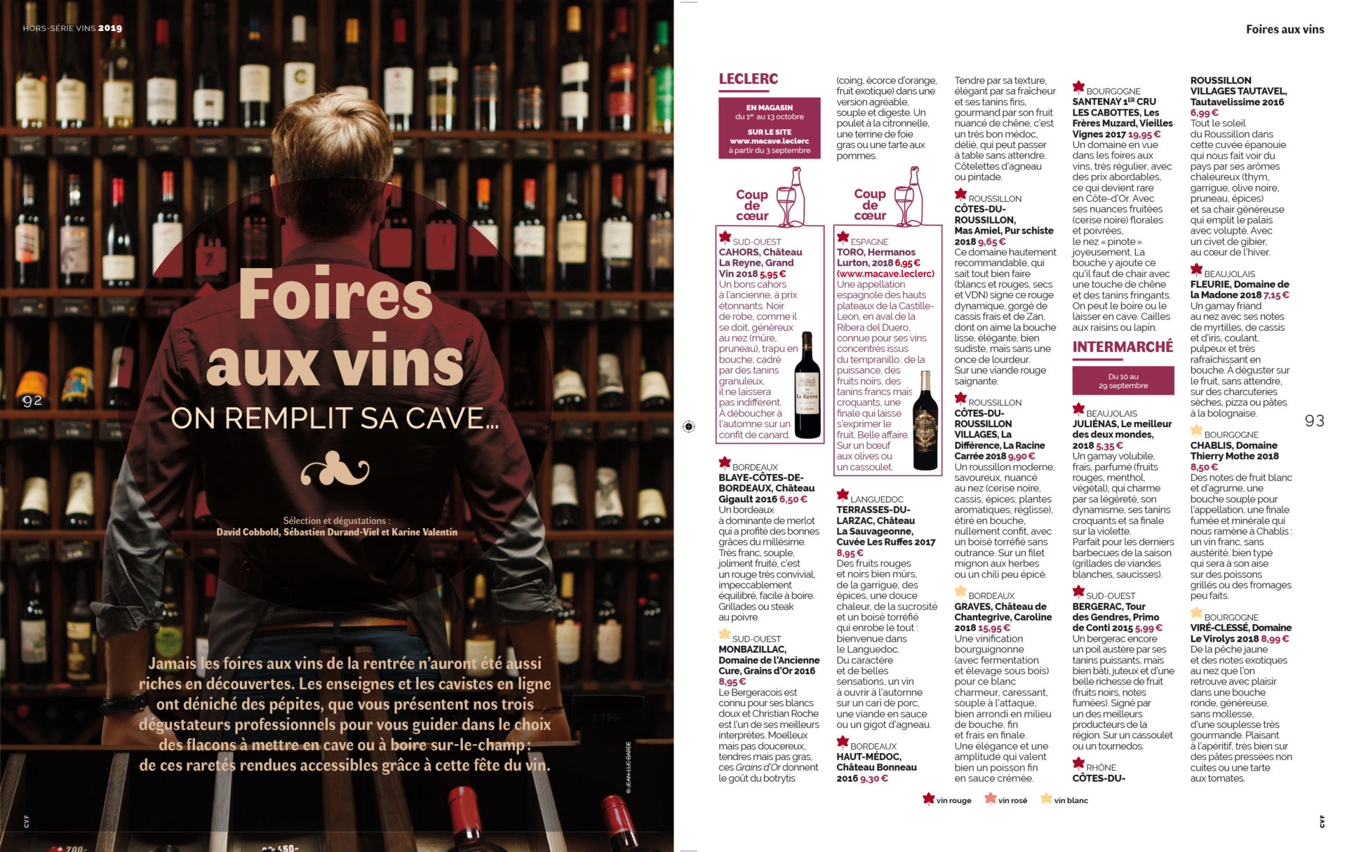 Panorama des meilleurs vignerons et vigneronnes du moment, région par région. Sélection des plus intéressant flacons des foires aux vins de la rentrée 2019. Accompagnées de reportages, actus et recettes.