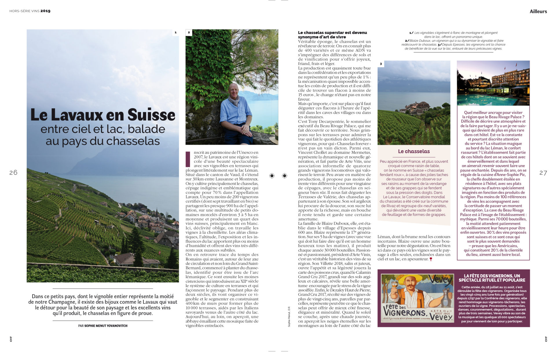 Conception graphique et réalisation du hors-série de rentrée spécial vins du magazine Cuisine et vins de France. Merci à Karine Valentin, rédactrice en chef spécial vins et à Sophie Menut, rédactrice en chef, pour leur confiance et leur fidélité. Sans oublier Élodie Fournier, secrétaire de rédaction, et Jean-Luc Barde, photographe, pour leurs précieuses collaborations.